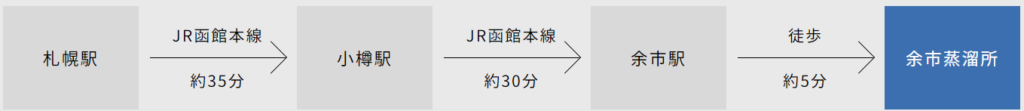 私は、札幌から小樽までは電車、小樽から余市まではバスという組み合わせで蒸溜所にアクセスしました。