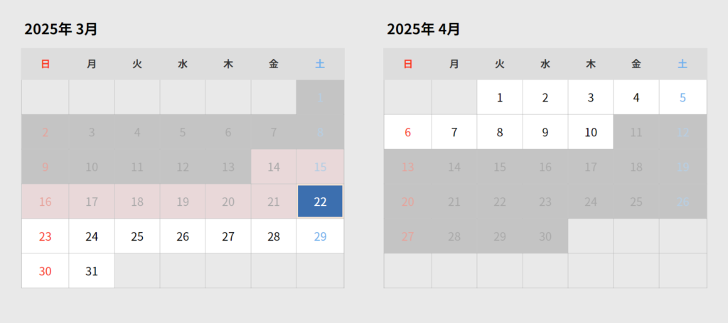 まずは、予約ページのページ下部までスクロールし、希望日を選択してください。