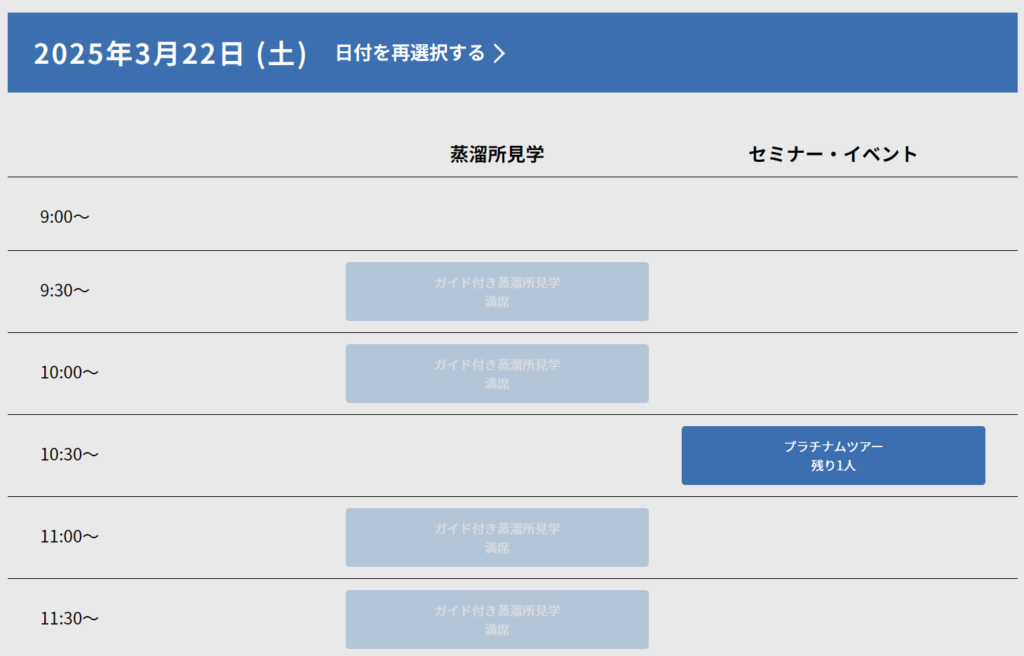 無料の一般見学以外にも、ウイスキーを楽しむ有料イベント・セミナーが用意されています。