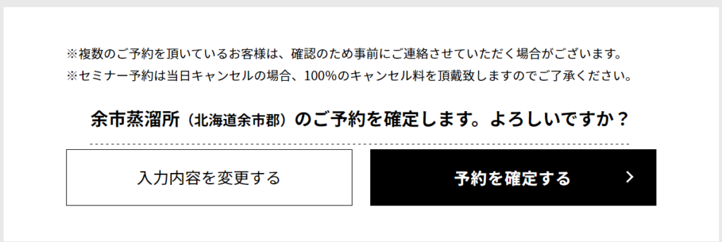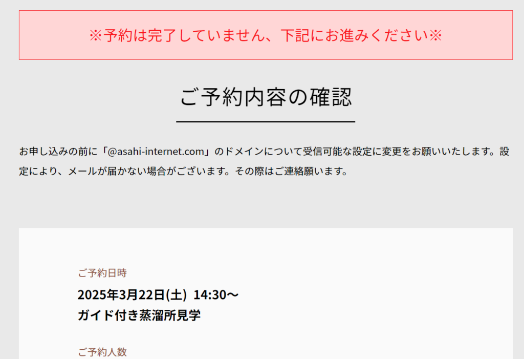 それではツアーの予約方法について解説します。まずは、以下の余市蒸溜所公式ホームページの見学予約ページを開いてください。