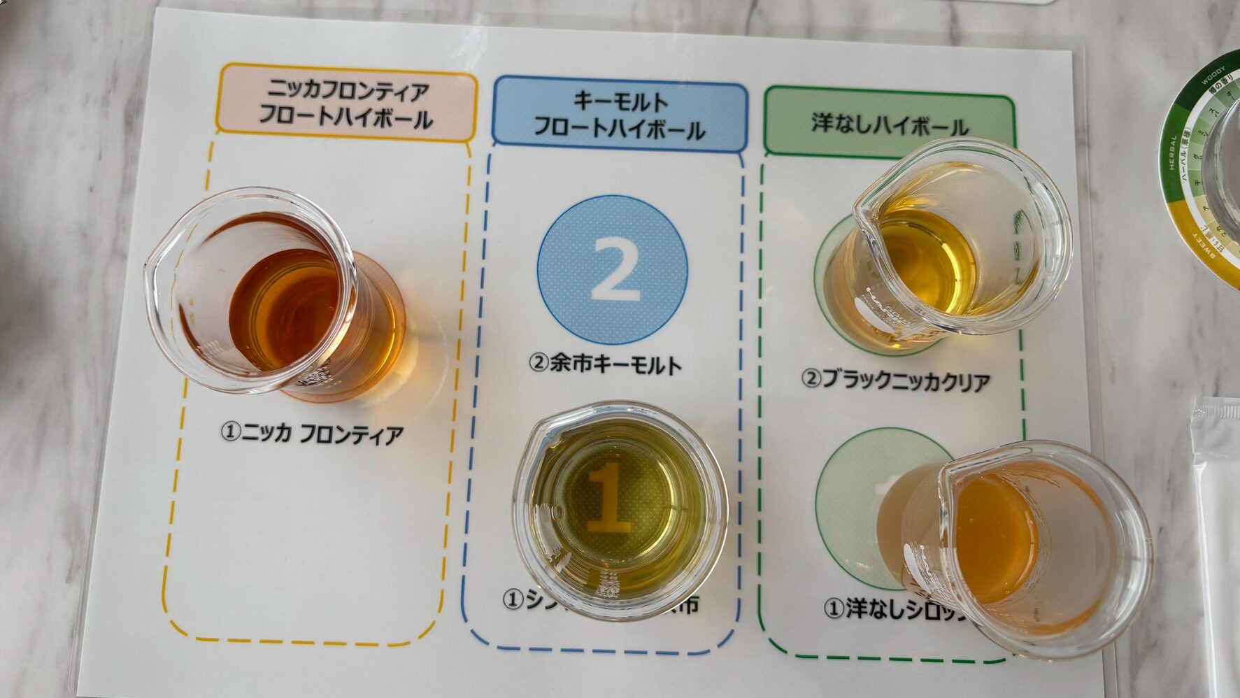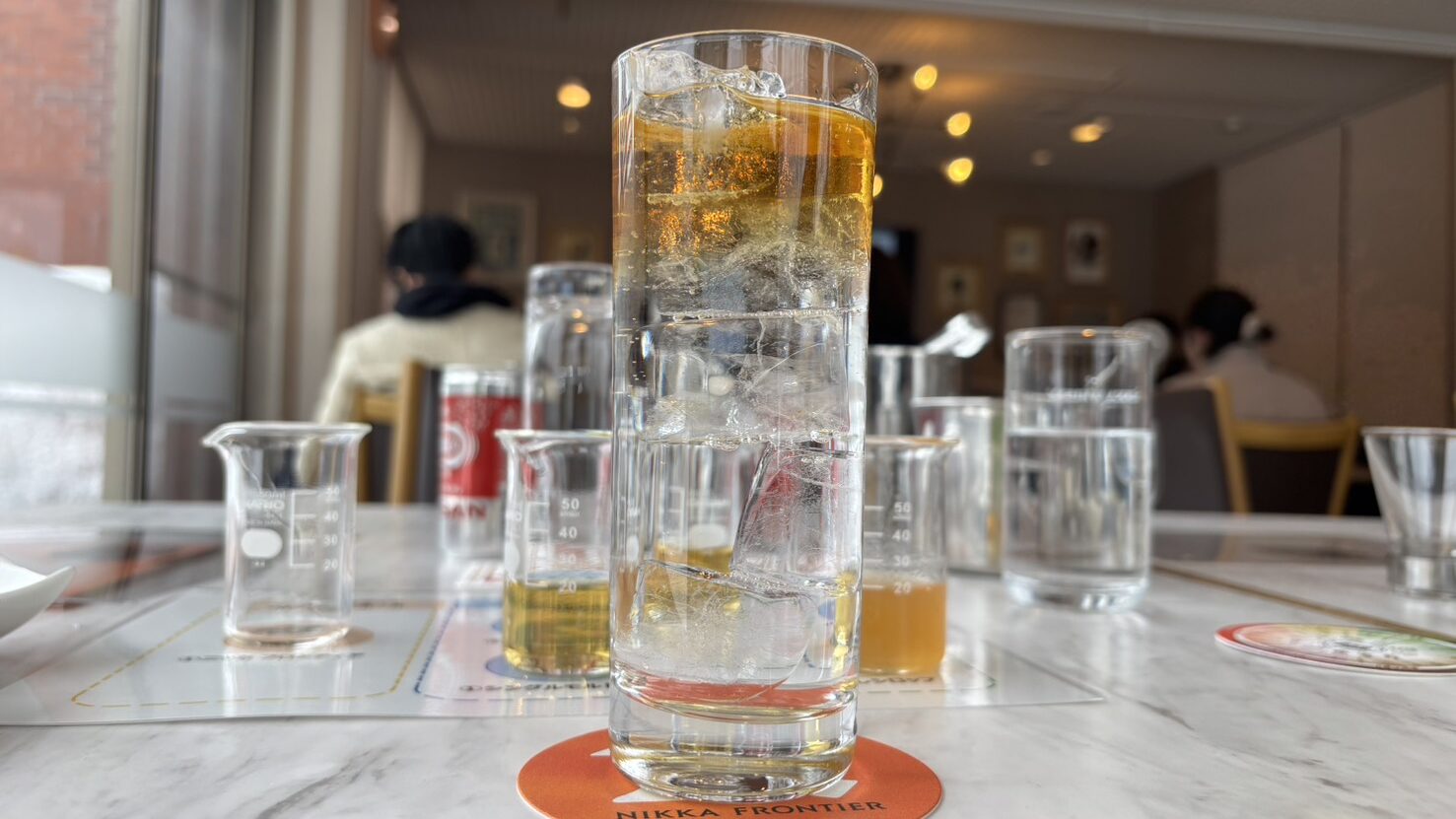 発売されたばかりの「ニッカ フロンティア」のハイボールをはじめ、余市ハイボールに好きな構成原酒を注ぐ「フロート」体験、さらには華やかな洋ナシのハイボールなど……。余市のポテンシャルを引き出すラインナップに、終始大満足の内容でした。